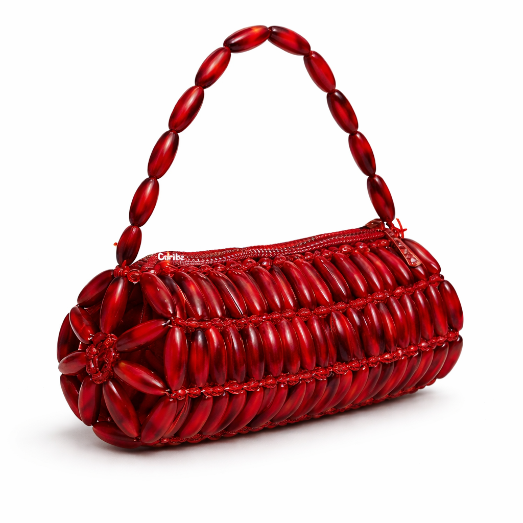 Atelier Emine’in Creamstone Couture serisine ait Calista Inferno, doğal sedef (mother-of-pearl) modüllerin, yüksek dayanımlı şeffaf bağlantı elemanları ve monofilament sistemlerle tek tek birleştirilmesiyle üretilmiş; referans çanta kategorisinde konumlanan, yüksek işçilik yoğunluğuna sahip premium bir el çantası tasarımıdır.