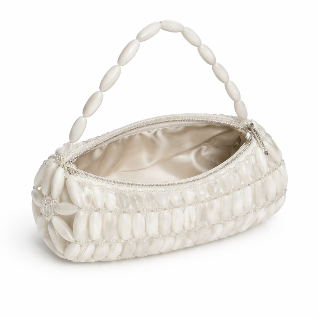 Atelier Emine’in Creamstone Couture serisine ait Calista Ivory, doğal sedef (mother-of-pearl) modüllerin, yüksek dayanımlı şeffaf bağlantı elemanları ve monofilament sistemlerle tek tek birleştirilmesiyle üretilmiş; referans çanta kategorisinde konumlanan, yüksek işçilik yoğunluğuna sahip premium bir el çantası tasarımıdır.