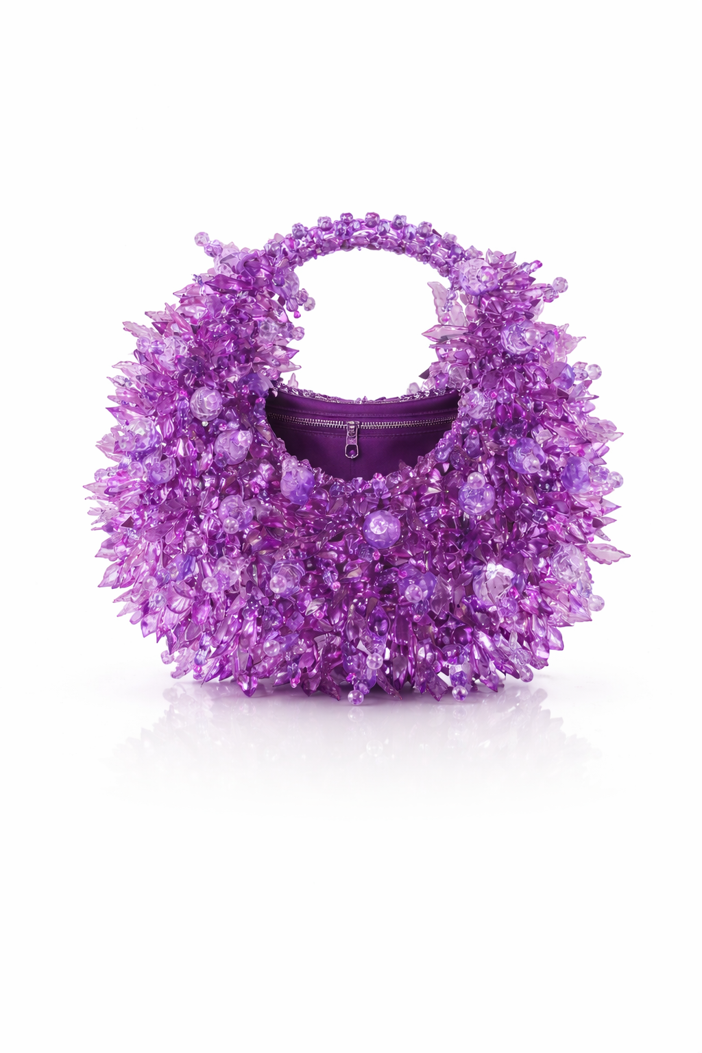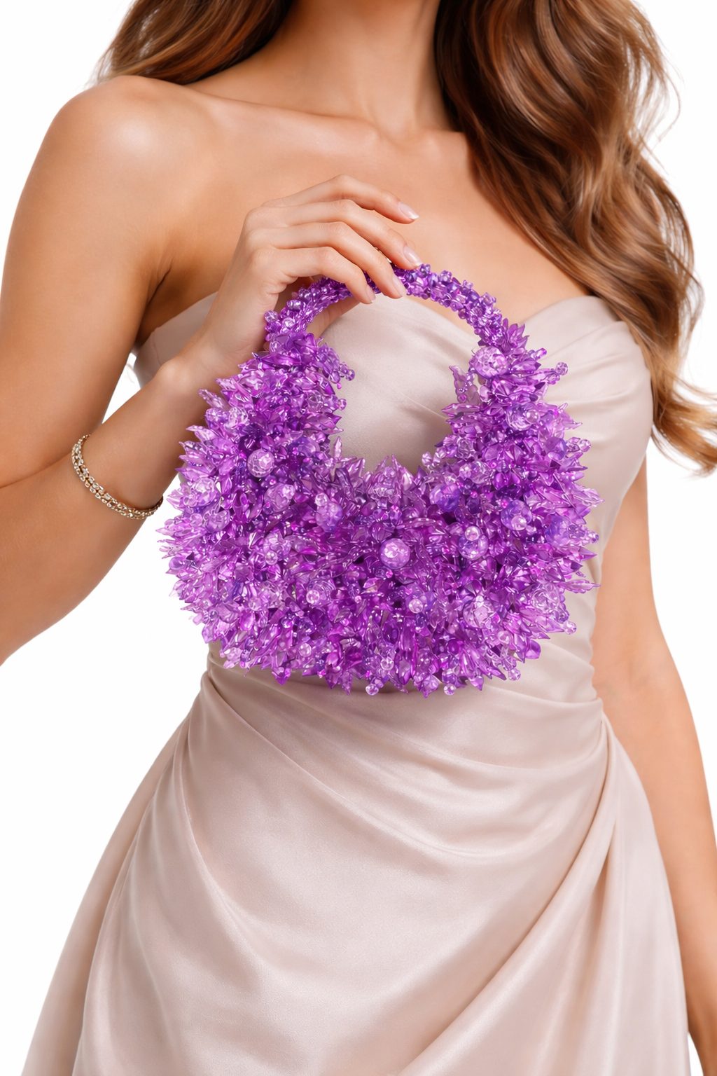 Stracci Lilacée Atelier Emine imzalı Stracci Lilacée Özel Üretim Kristal Çanta, çarpıcı rengi ve lüks kristal detaylarıyla stilinize güçlü ve sofistike bir dokunuş katar. ATELIEREMINE609 Stracci Lilacée