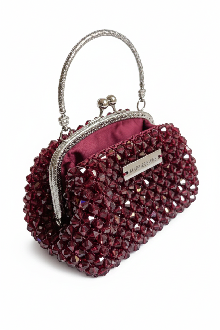 Affogato Granata is one of the timeless and sculptural concept pieces from the Crystal Gelato Couture series, combining classic frame bag architecture with intricate crystal craftsmanship.