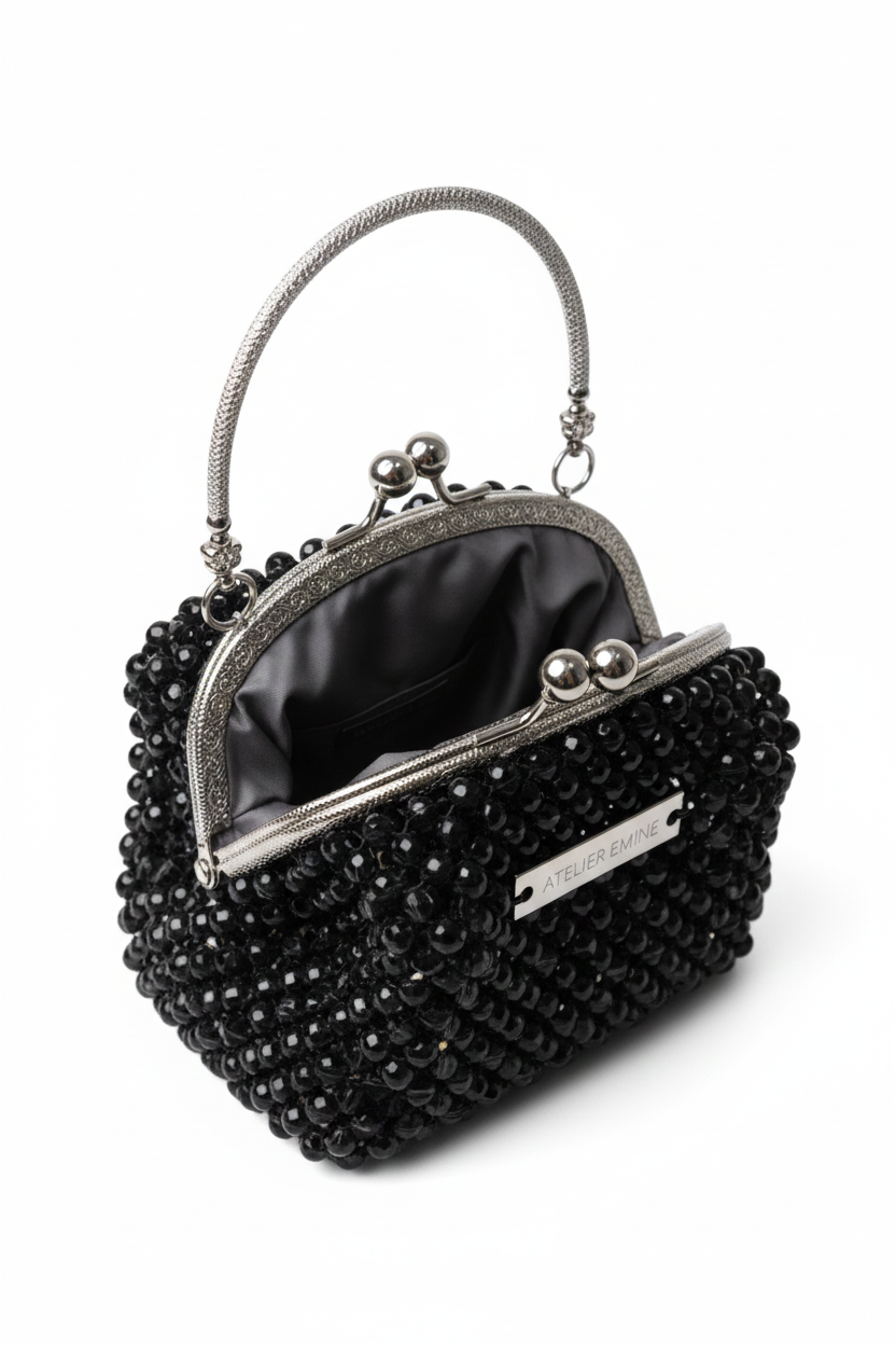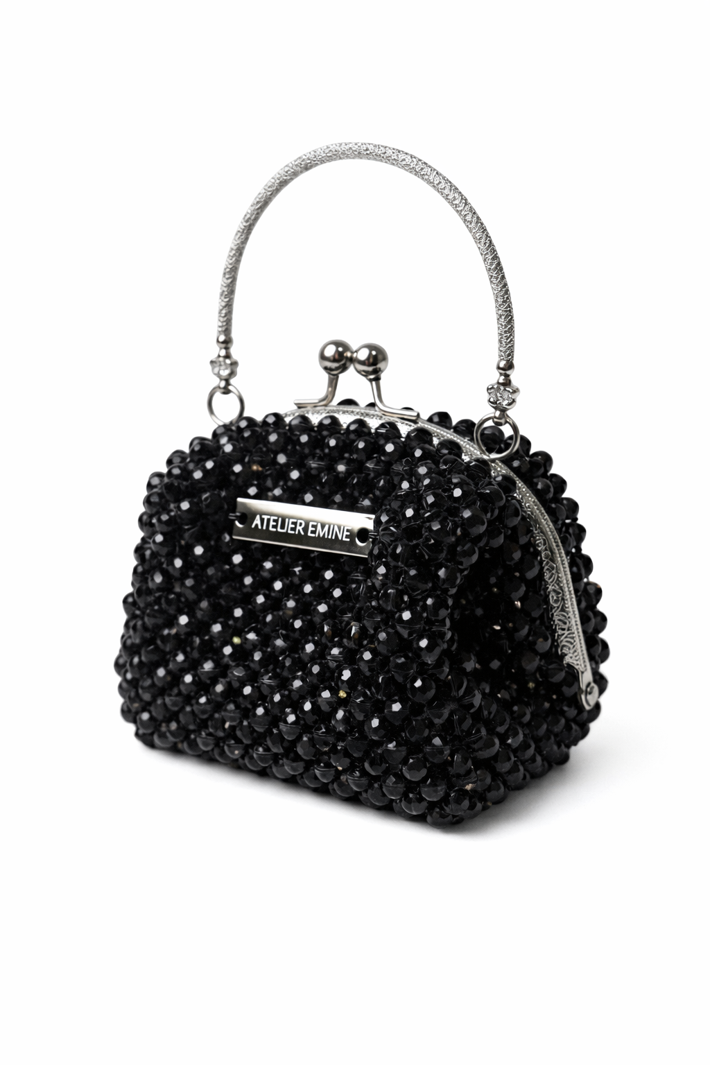 Affogato Nero , from Atelier Emine's Crystal Gelato Couture collection, is a premium mini bag model crafted from 8mm optical-grade crystal beads individually woven with high-strength fishing line, and features a metal frame.