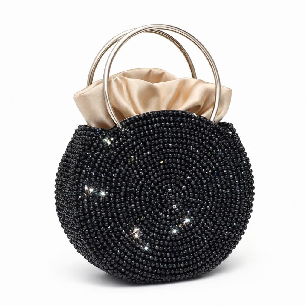 Crystal beads are individually woven with high-strength fishing line in a spiral weave pattern to form a compact body. This structure ensures balanced light refraction and structural stability on the surface while maintaining the bag's circular geometry.