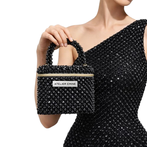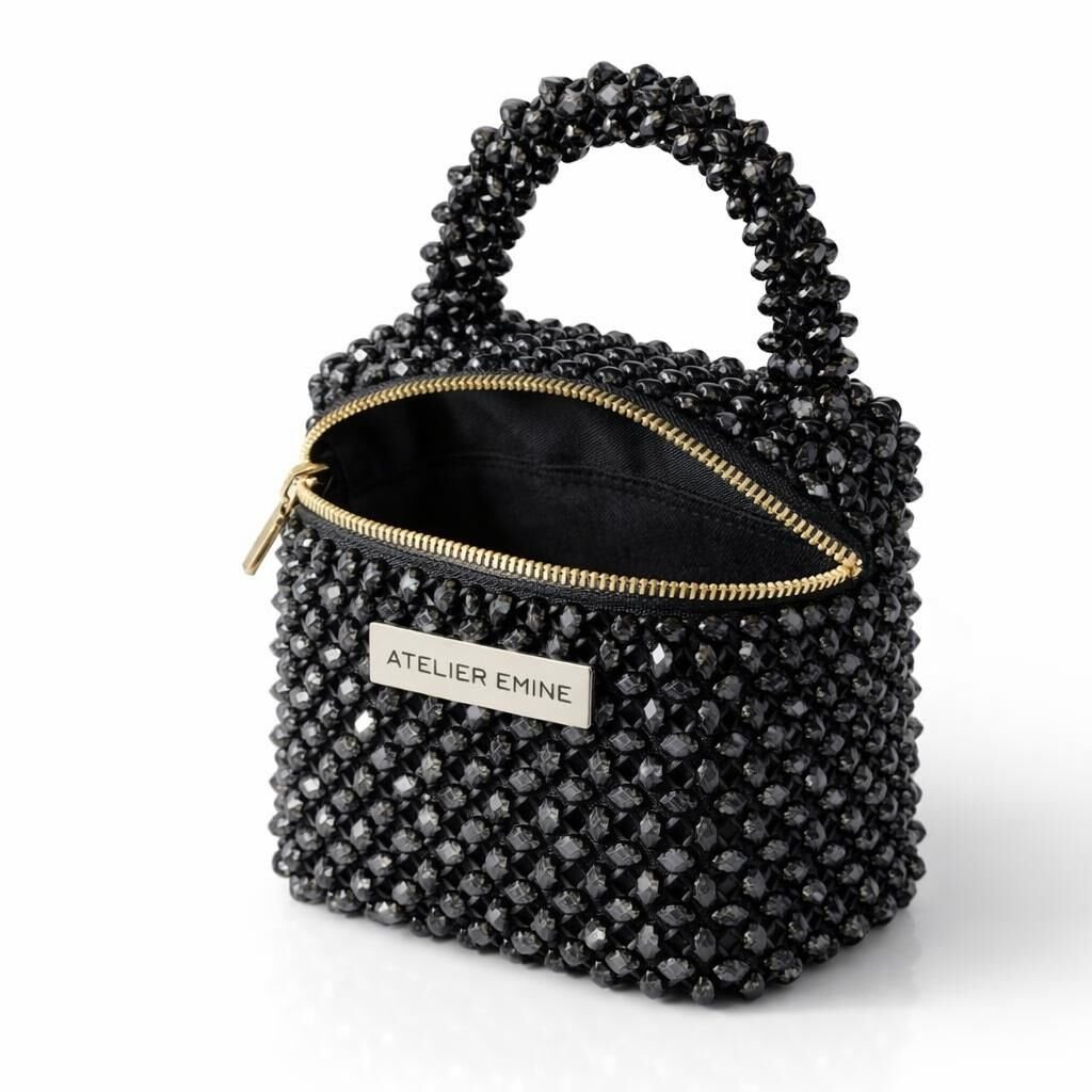 This design from Atelier Emine's Crystal Gelato Couture series is a premium mini bag in a box form , entirely handcrafted using 8 mm optical grade crystal beads.