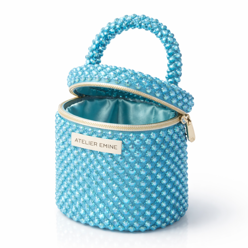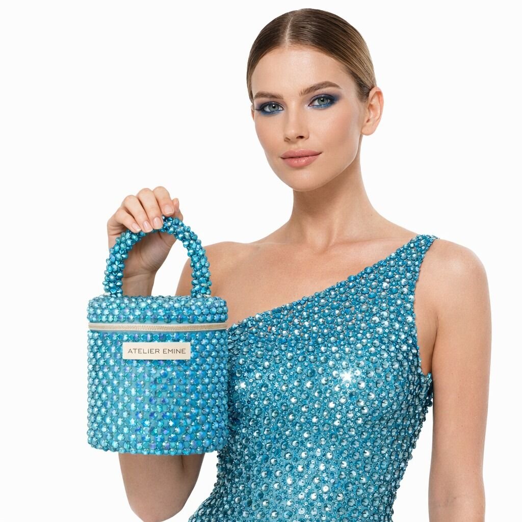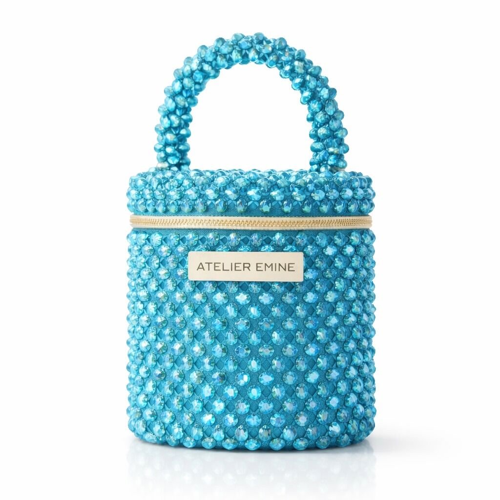 Sorbetto Sea , from Atelier Emine's Crystal Gelato Couture series, is a premium mini bag model handcrafted entirely by hand, using 8 mm optical-grade crystal beads woven with high-strength fishing line, resulting in an architecturally clear form.
