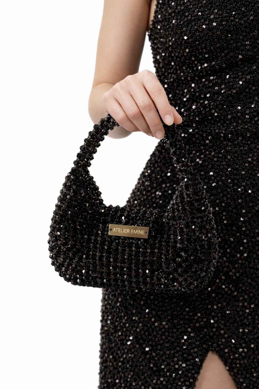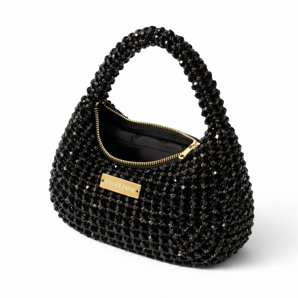 The Stracci Amaré from Atelier Emine's Crystal Gelato Couture collection is a premium mini bag crafted entirely by hand, featuring 8mm optical-grade crystal beads individually woven with high-strength fishing line, resulting in a smooth transition and balanced volume.