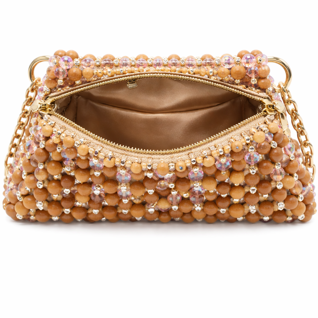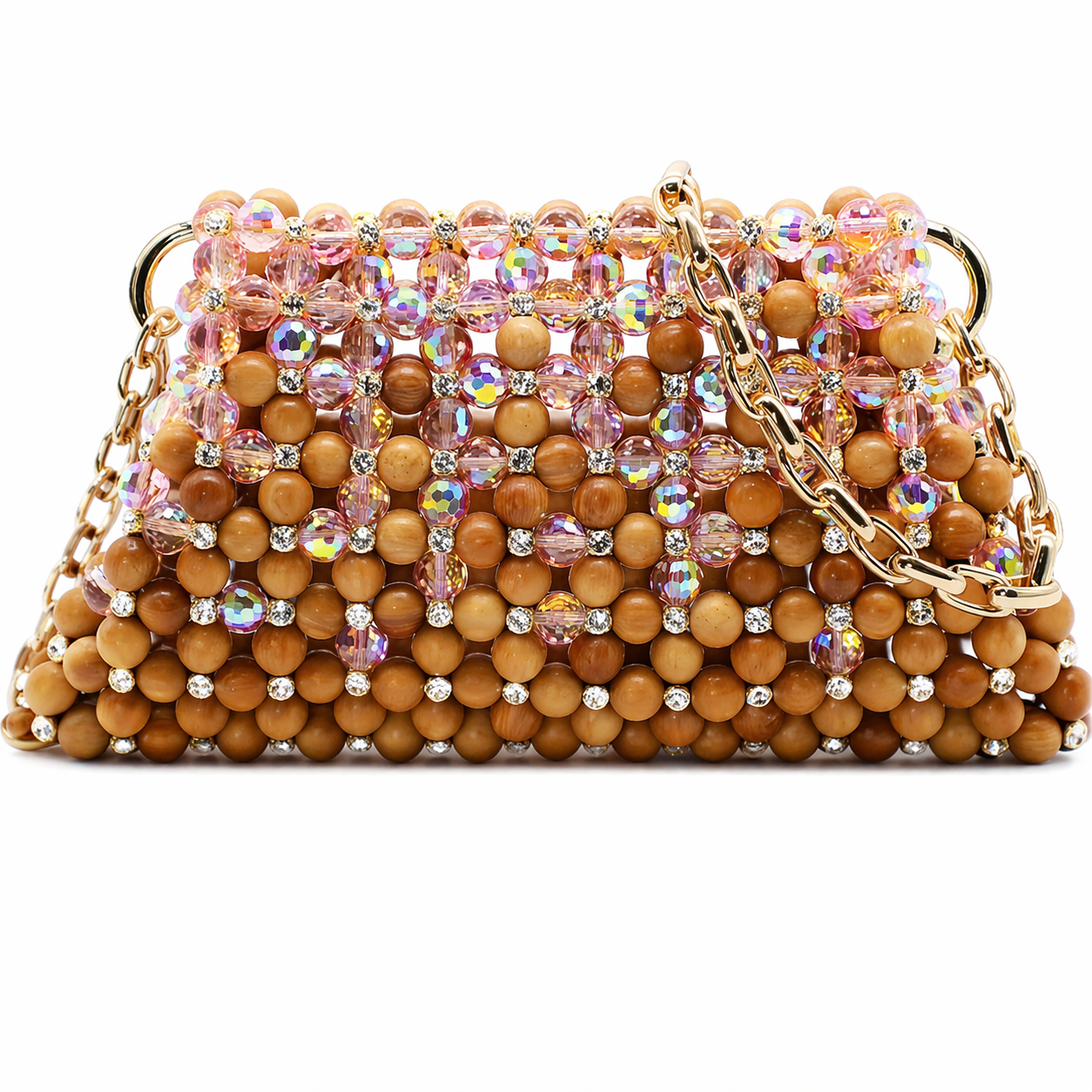Premium El Yapımı Ahşap & Kristal Boncuk Mini Bag
