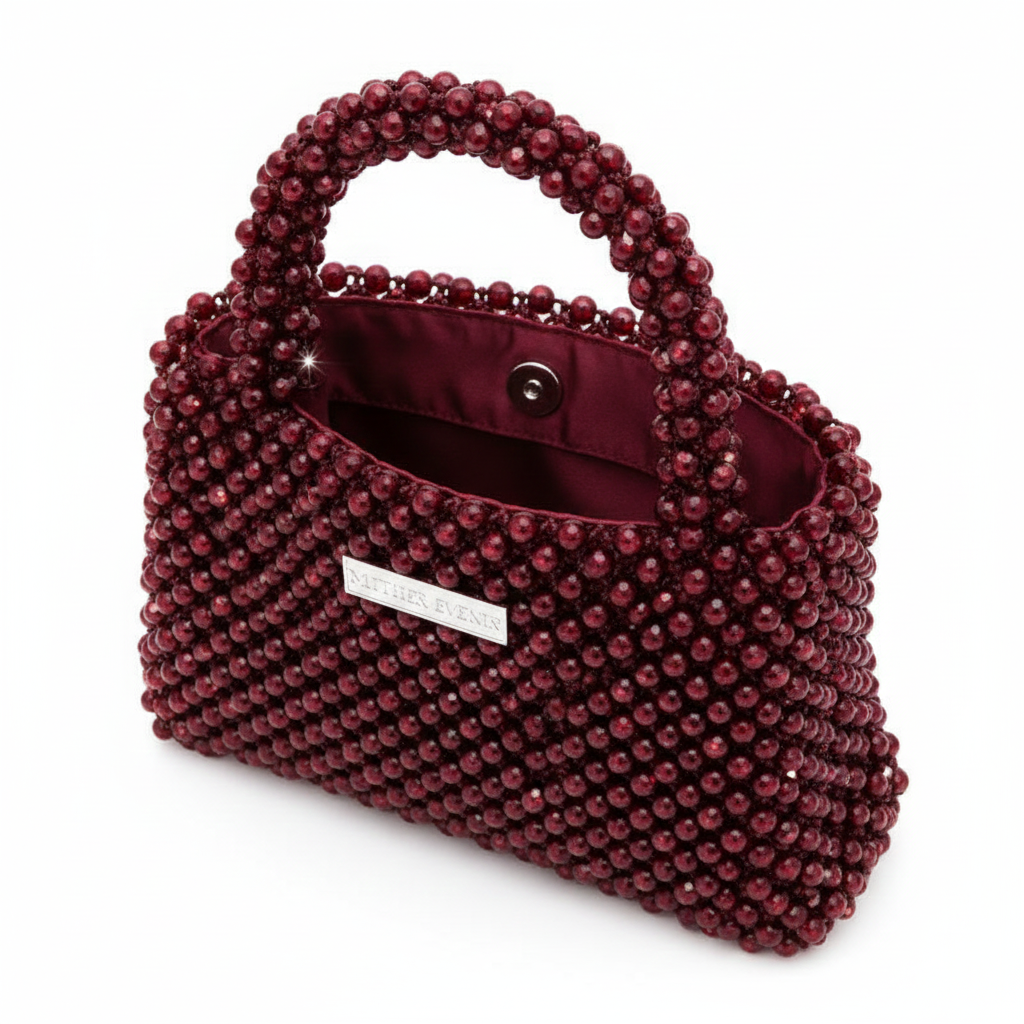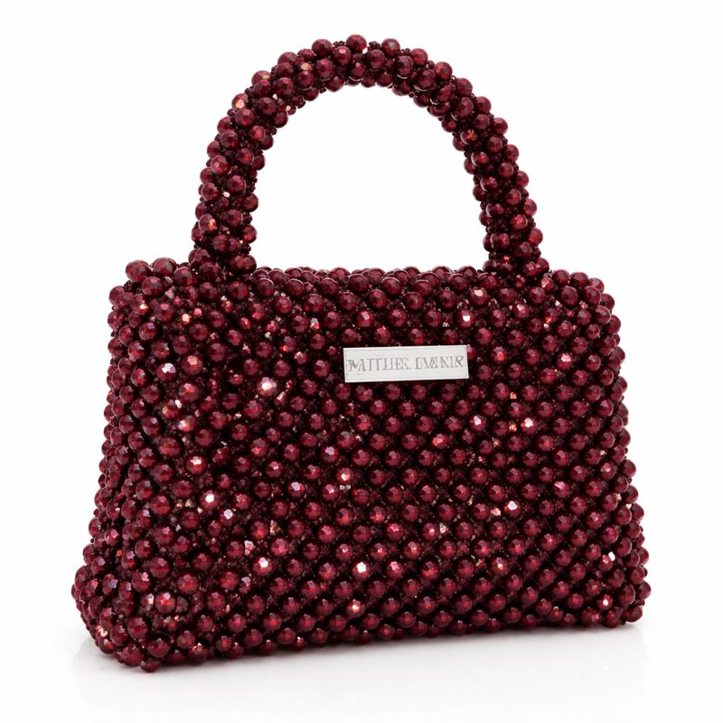 Atelier Emine’in Crystal Gelato Couture koleksiyonuna ait Bianca Sangria, 8 mm optik sınıfı kristal boncukların yüksek mukavemetli misina ile tek tek örülmesiyle üretilmiş, kompakt ve dengeli formlu premium mini çanta modelidir.