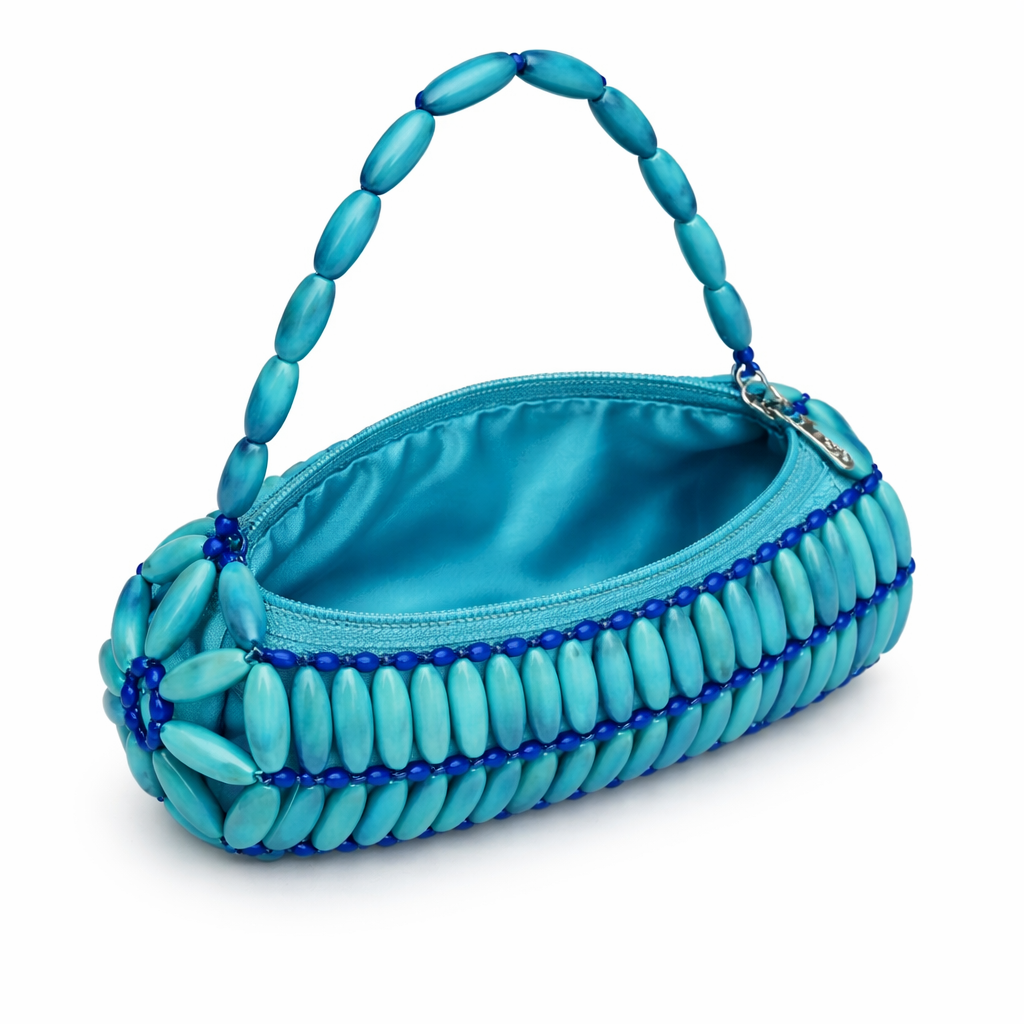 Model, gövdeyle birebir uyumlu şekilde tasarlanmış, doğal sedef modüllerden oluşan kısa el askısına sahiptir. Askı, elde taşımaya uygun ergonomik bir kavrama sunacak şekilde optimize edilmiş; bağlantı noktaları, taşıma sırasında yük dağılımını dengeleyerek yapısal stabiliteyi destekleyecek biçimde güçlendirilmiştir.