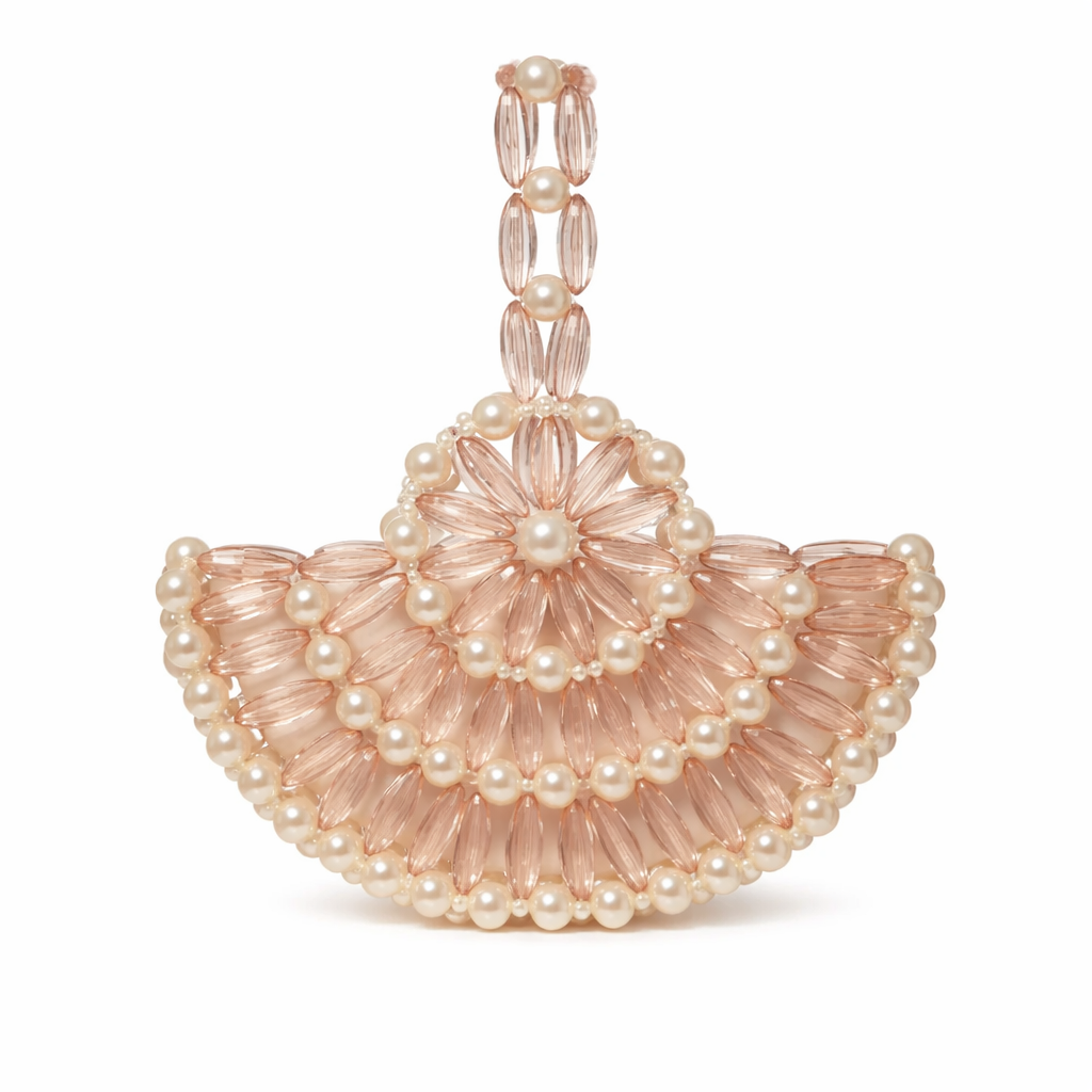Atelier Emine’in Crystal Gelato Couture koleksiyonuna ait Melo Lotus, merkezden dışa doğru genişleyen radyal örgü mimarisiyle tasarlanmış, heykelsi karaktere sahip premium el yapımı kristal mini çanta modelidir.