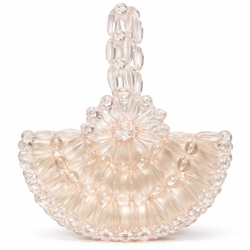 Atelier Emine’in Crystal Gelato Couture koleksiyonuna ait Melo Swan, merkezden dışa doğru genişleyen radyal örgü mimarisiyle tasarlanmış, heykelsi karaktere sahip premium el yapımı kristal mini çanta modelidir.