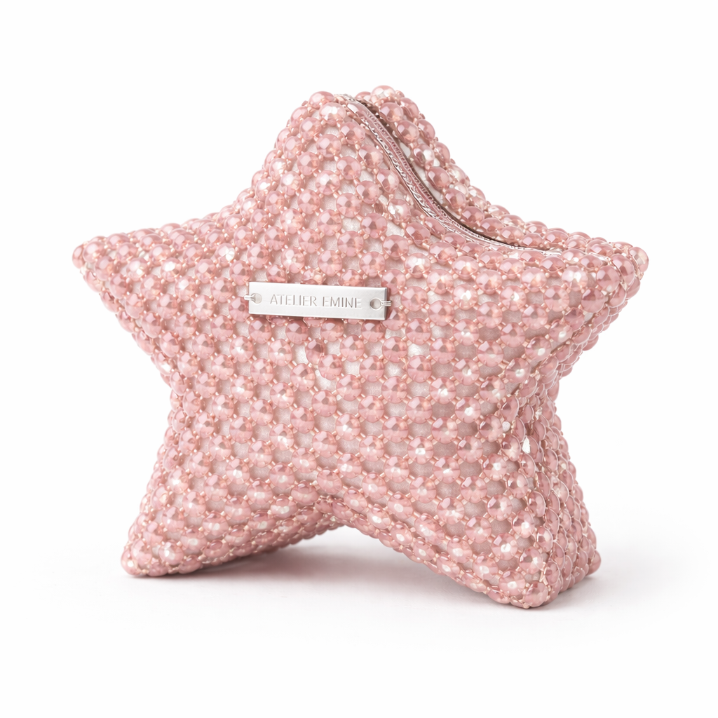 Atelier Emine’in Crystal Gelato Couture serisine ait Mielo Confetto, üç boyutlu yıldız formu esas alınarak tasarlanmış; 8 mm optik sınıfı kristal boncukların yüksek dayanımlı misina ile tek tek örülmesiyle üretilmiş, heykelsi nitelik taşıyan premium mini clutch modelidir.