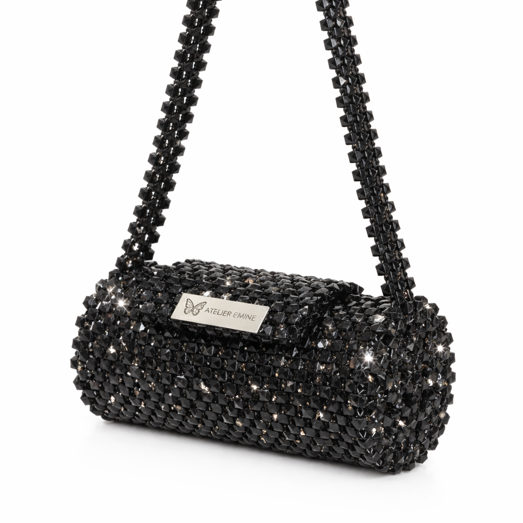 Atelier Emine’in Crystal Gelato Couture serisine ait Ricotta Ossidiana, 8 mm optik sınıfı kristal boncukların yüksek dayanımlı misina ile örülmesiyle tamamen el işçiliğiyle üretilmiş, zamansız ve rafine bir mini çanta tasarımıdır.