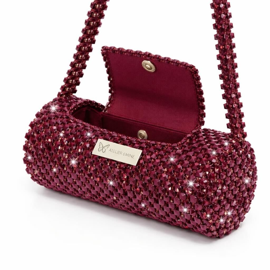Atelier Emine’in Crystal Gelato Couture serisine ait Ricotta Rubino, 8 mm optik sınıfı kristal boncukların yüksek dayanımlı misina ile örülmesiyle tamamen el işçiliğiyle üretilmiş, zamansız ve rafine bir mini çanta tasarımıdır.