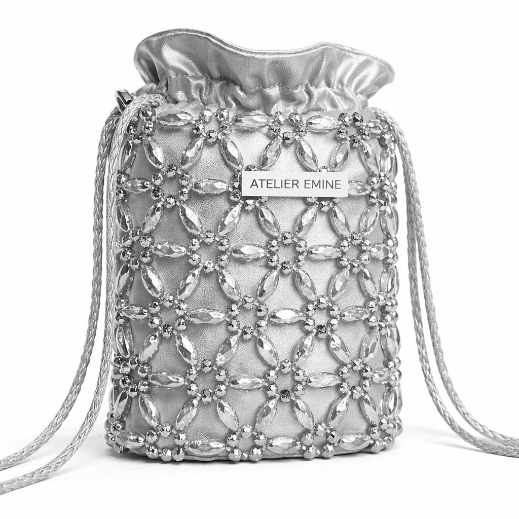 Premium El Yapımı Kristal Drawstring Mini Bag