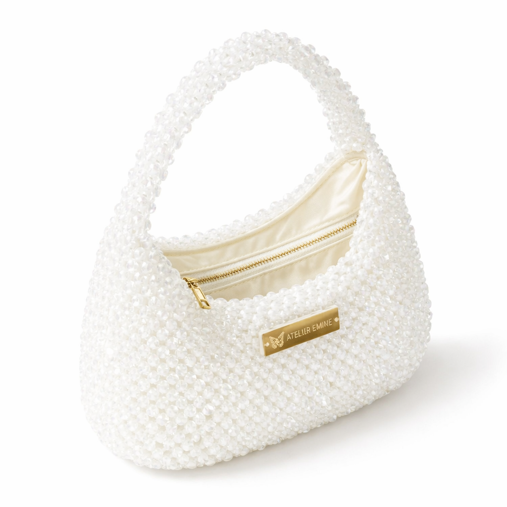 Atelier Emine’in Crystal Gelato Couture koleksiyonuna ait Stracci Vanille, 8 mm optik sınıfı kristal boncukların yüksek dayanımlı misina ile tek tek örülmesiyle tamamen el işçiliğiyle üretilmiş, yumuşak geçişli ve dengeli hacme sahip premium mini çanta modelidir.